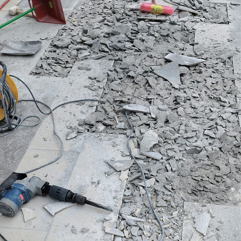 We handle the removal of tiles, marble, and concrete flooring to prepare surfaces for renovation or replacement, ensuring a clean and ready workspace.